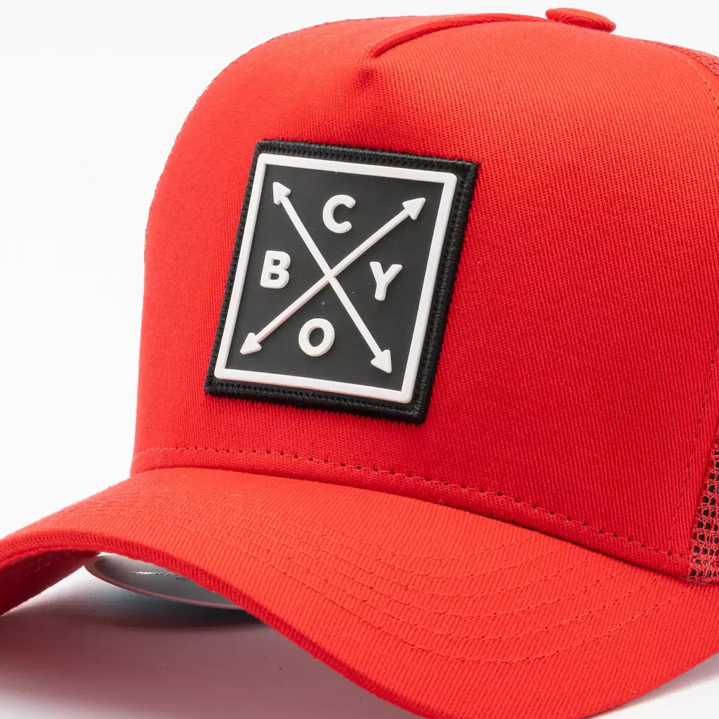 Boné ChoraBoy Aba Curva Trucker - Logo Quadrado - Vermelho - REF 162